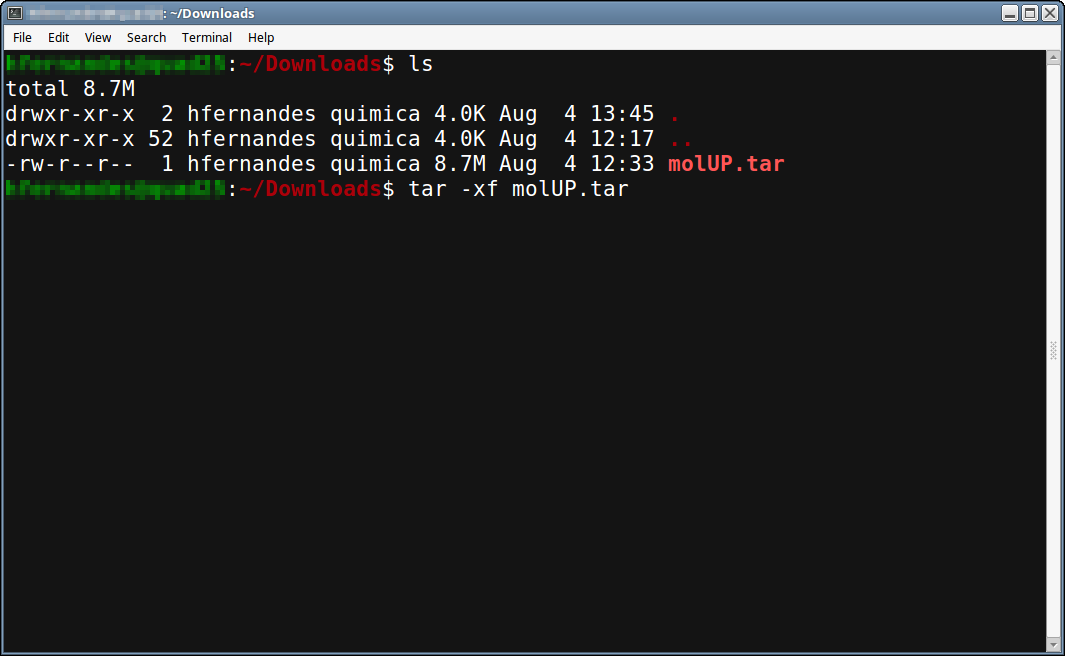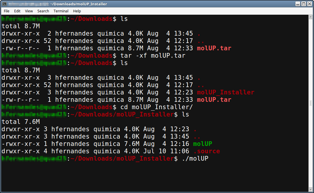 1. Untar molUP.tar. 2. Open the molUP_Installer directory and run the installer ($./molUP).